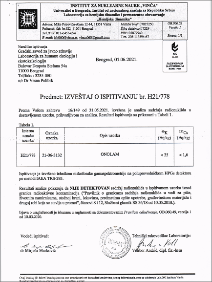 Onolam koji proizvodi Ramiza Idrizović pakuje se isključivo u zelenoj kutiji sa oznakom "Zelenkada" i njenim imenom na istoj. Onolam sa plavom kutijom nije njen proizvod i ne odgovara za isti. Svi ostali preparati koje uzimate a nemaju navedene oznake nisu njeni proizvodi.