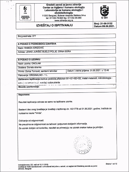 Onolam koji proizvodi Ramiza Idrizović pakuje se isključivo u zelenoj kutiji sa oznakom "Zelenkada" i njenim imenom na istoj. Onolam sa plavom kutijom nije njen proizvod i ne odgovara za isti. Svi ostali preparati koje uzimate a nemaju navedene oznake nisu njeni proizvodi.